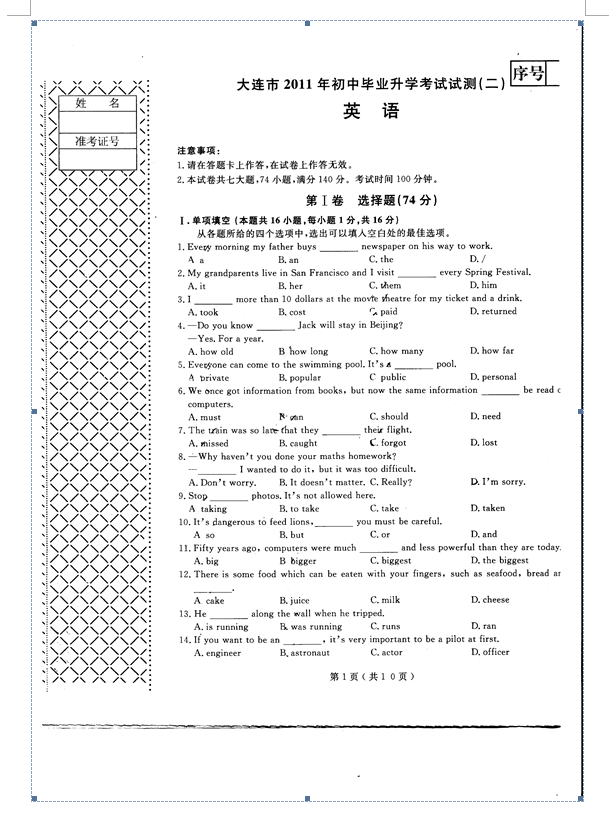 您现在的位置:中考大连站 > 中考备考 > 中考二模 > 英语二模 > 正文