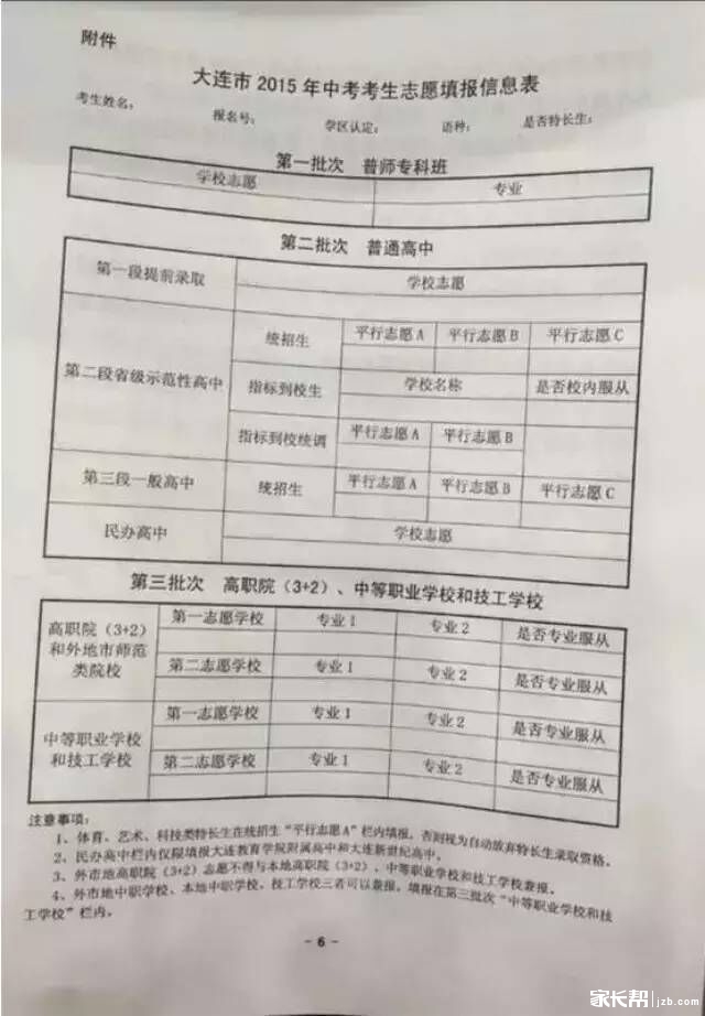 2015年大连市中考考生志愿填报表