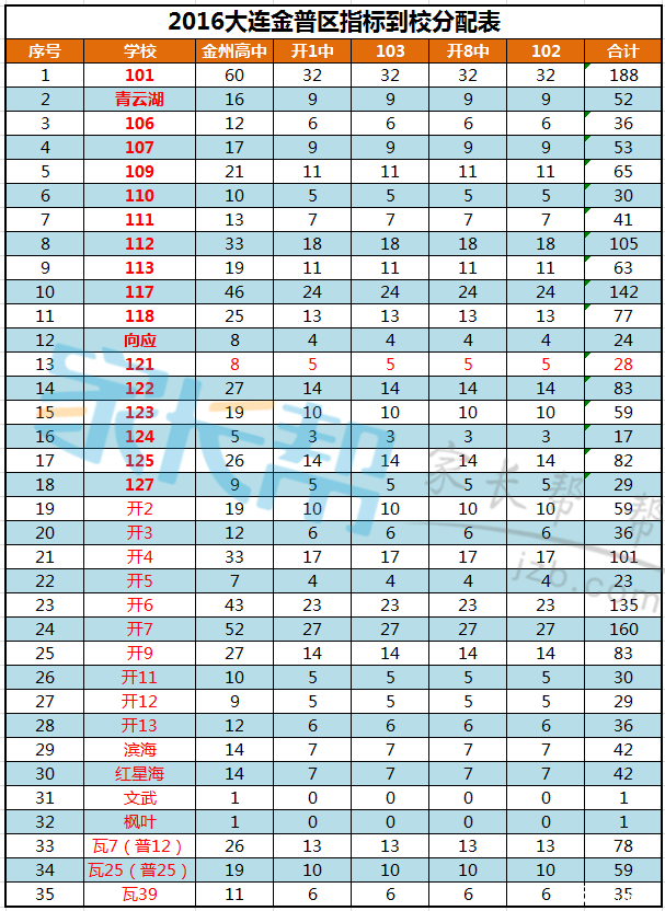 2016年大连市金普区指标到校表