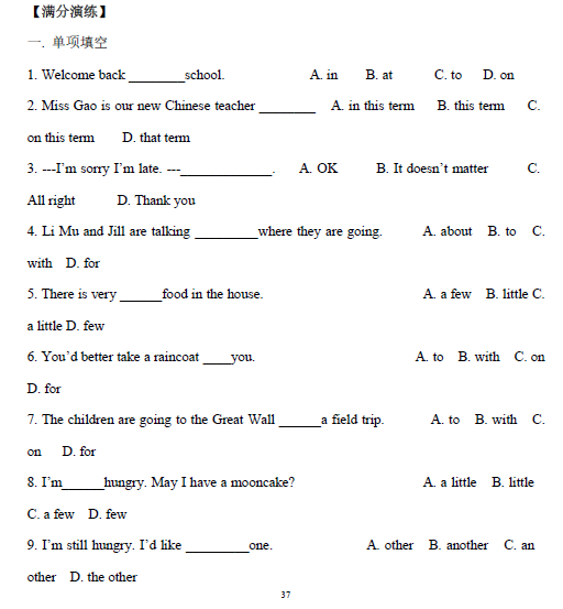 初二年级上学期中考英语知识点练习