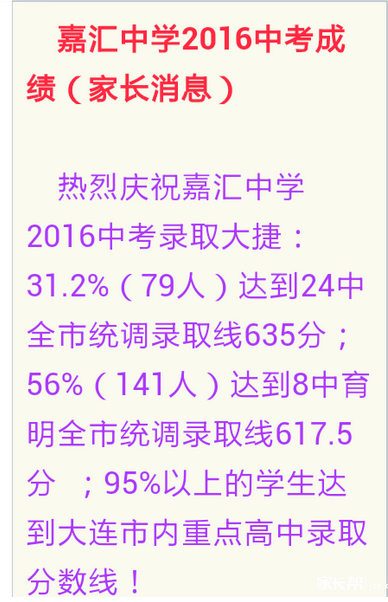 标签:2016大连中考 中学喜报 嘉汇中学说两句