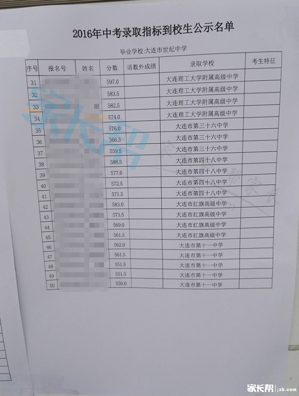大连世纪中学2016年中考指标公示材料(2)