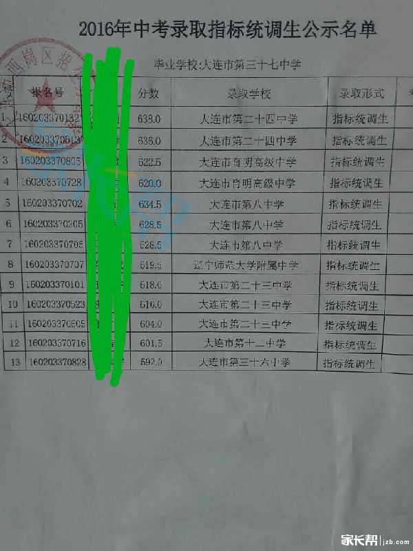 大连37中2016年中考指标公示材料(5)