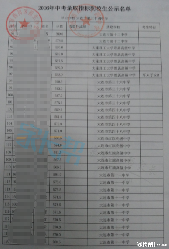 大连34中2016年中考指标公示材料(4)