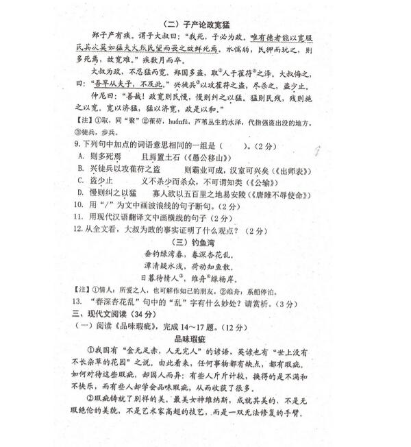 标签:大连西岗区 初三期末测试 语文试题说两句