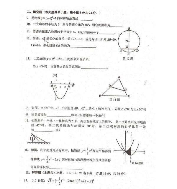 2014-2015大连西岗区初三期末测试数学试题(2)