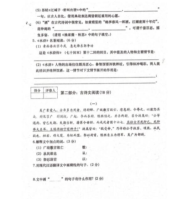 标签:大连甘井子区 初三期末测试 语文试题说两句