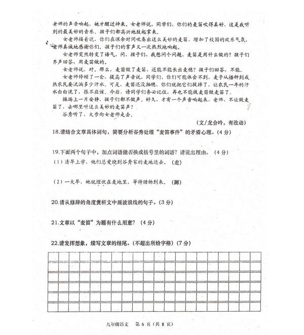 标签:大连甘井子区 初三期末测试 语文试题说两句