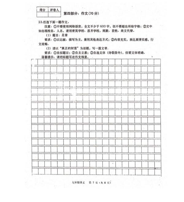 标签:大连甘井子区 初三期末测试 语文试题说两句