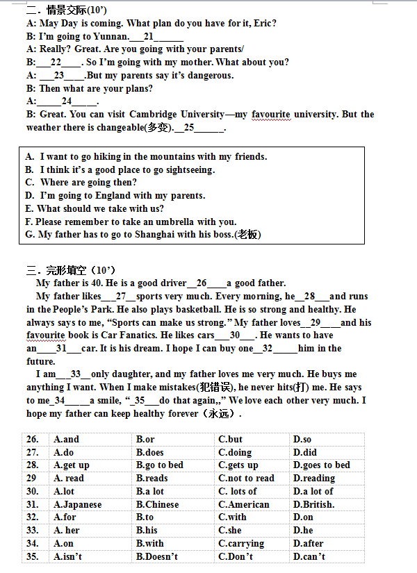 大连甘区2012-2013学年初一下期中英语试题(2)
