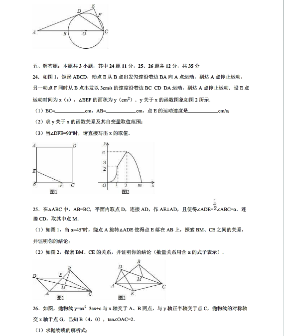 大连甘井子区2015-2016学年初三上期末数学试卷(6)