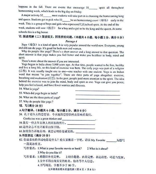 大连高新区2015-2016学年初三上期末英语试题(8)