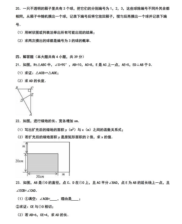 大连中山区2015-2016学年初三上期末数学试卷(4)
