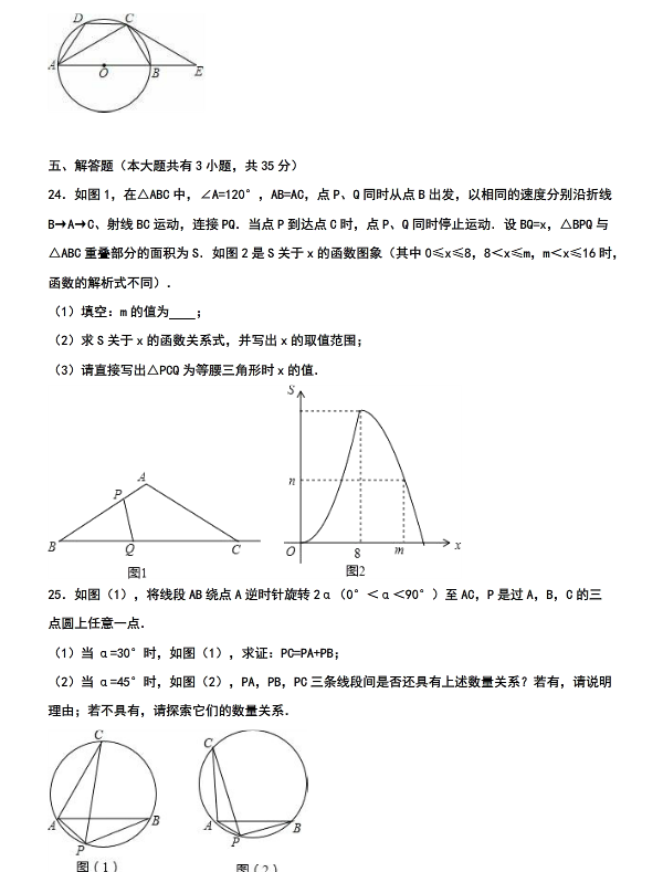 大连中山区2015-2016学年初三上期末数学试卷(5)