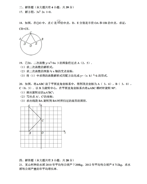 大连高新区2015-2016学年初三上期末数学试卷(3)