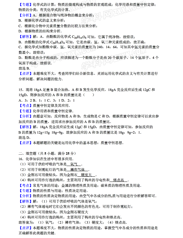 标签:初三期末 化学答案说两句