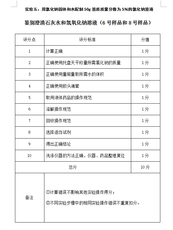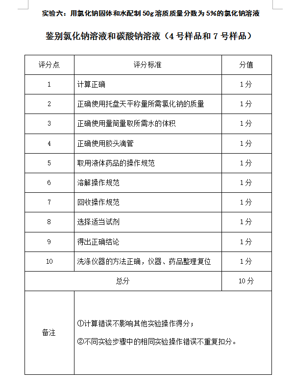 大连市中考化学实验加试评分标准(6)