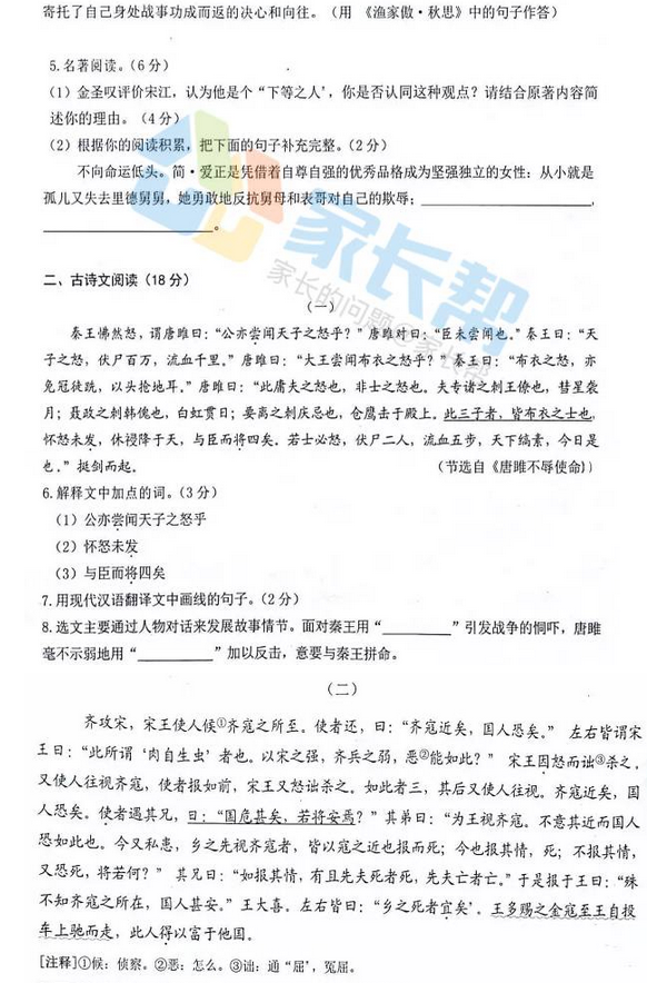 大连高新区2016-2017学年初三上期末语文试卷(2)
