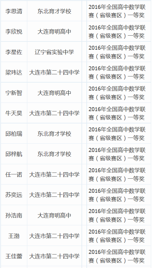 第32届高中数学联赛省一获奖名单公示(辽宁)(3)