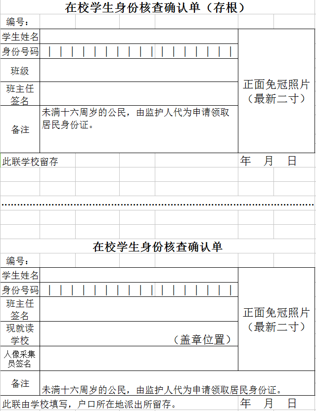关于学生办理二代身份证《在校学生身份核查确认单》