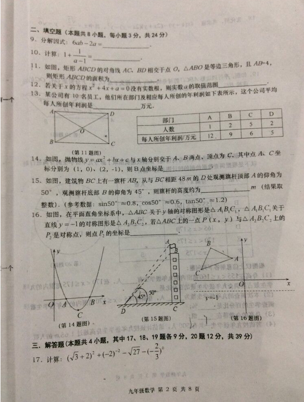 2017年甘井子区中考一模数学试卷(2)
