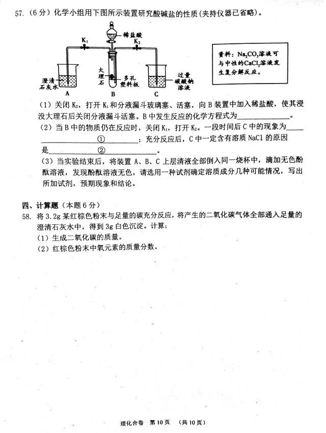 2018大连中考甘井子、沙河口区一模化学试卷(4)